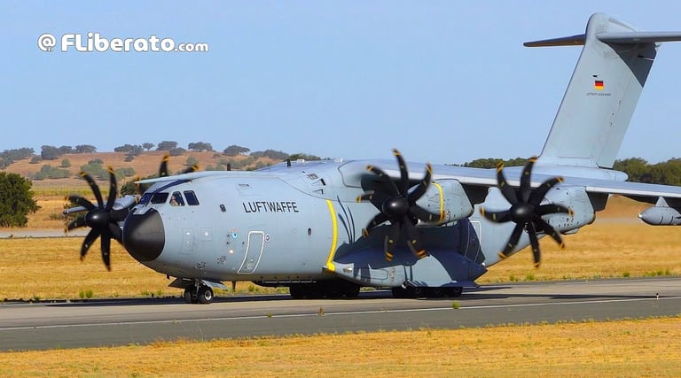 A400M da 62.ª Esquadra da Força Aérea Alemã no NATO Tiger Meet 2025 (https://www.natotigers.org/) na Base Aérea N.º 11, em Beja.